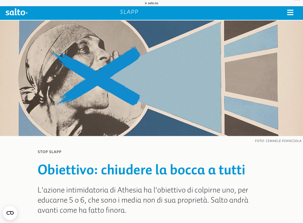 Salto publisher Max Benedikter and editor Fabio Gobbato believe that “the claim for damages is an attempt to prevent the publication of critical news and investigative research.” They also see clear signs of a classic SLAPP lawsuit (strategic lawsuit against public participation) “by which an overbearing media company wants to eliminate an inconvenient competitor. It involves silencing a critical media outlet.”