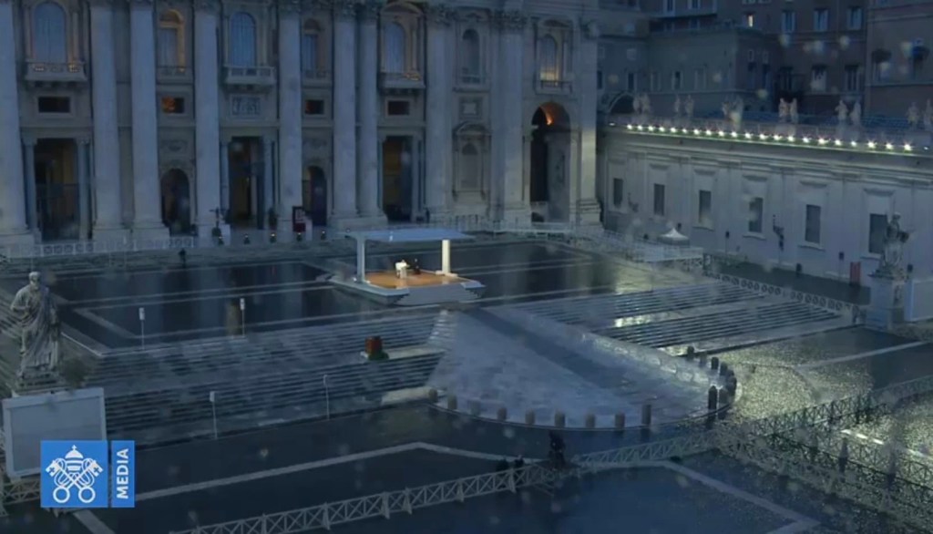 So God bless Italia, God bless the whole world: a wish to all of us to work together, to help one another, to learn from the mistakes made before and during this scourge, and to come out better. We should not leave this task exclusively to a lonely man in a rain-wet square …